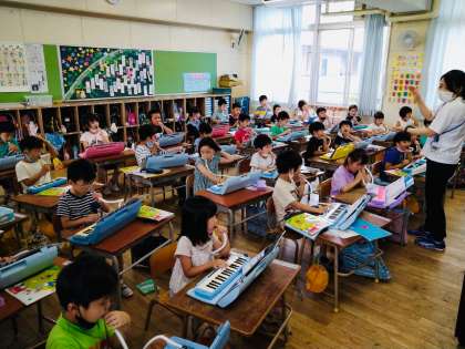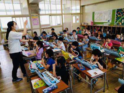 音楽の先生に来ていただき、歌や鍵盤ハーモニカの学習をしました。