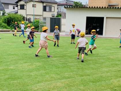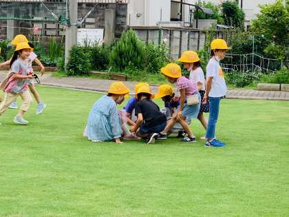 朝には濡れていた芝も、子ども達が遊ぶ時間にはすっかり乾き、子ども達は芝生の上で気持ちよさそうに寝転んでいました。