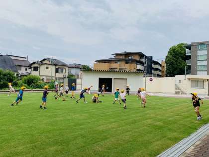 熱中症に気を付けながら、短時間だけ芝生の上で遊びました。