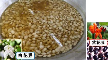 白花豆は「ベニバナインゲン」の仲間です。同じベニバナインゲンの仲間には紫色で黒い模様の入った「紫花豆」もあります。