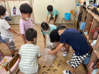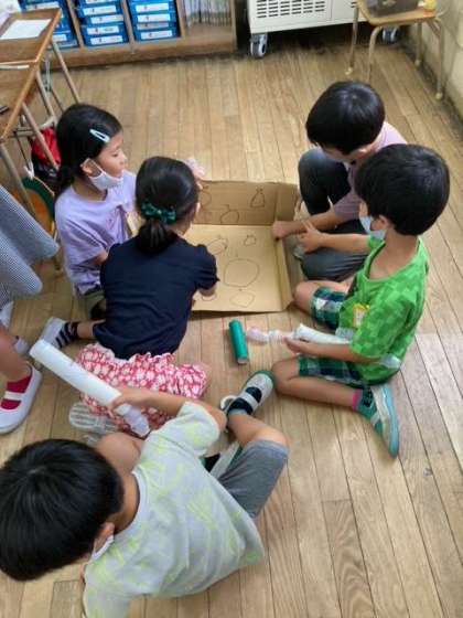 生活では自分たちで作りたいおもちゃ作りに取り掛かりました。