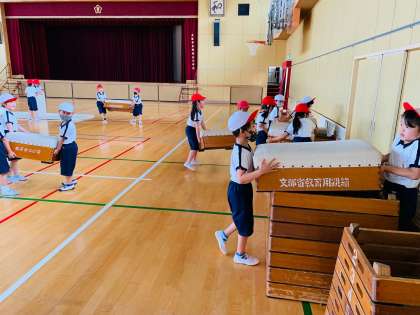 マットや跳び箱など、重い大きなものも、友達と協力して安全に運ぶ姿に、子ども達の成長を感じます♪