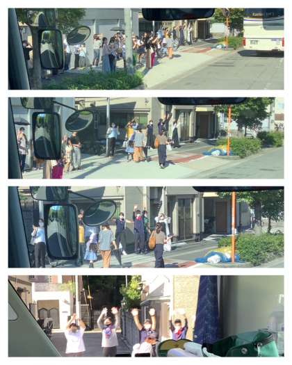 たくさんの保護者の皆さま、教職員の皆さま、お見送りありがとうございます。