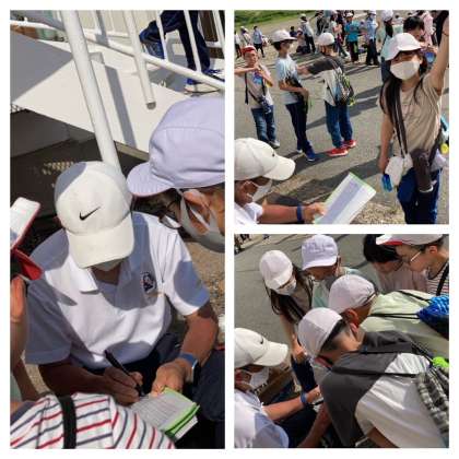 下山したら校長先生にチェックしてもらったあと、冷たいスポーツドリンクをいただきました。疲れた中にも、自然の中を歩いた満足感があるようです。