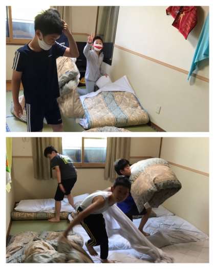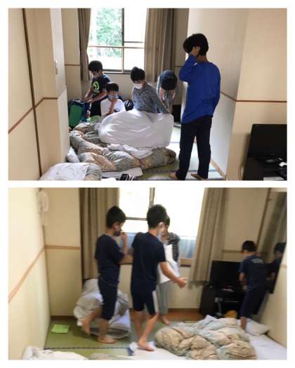 布団を上げ、部屋の整頓です。