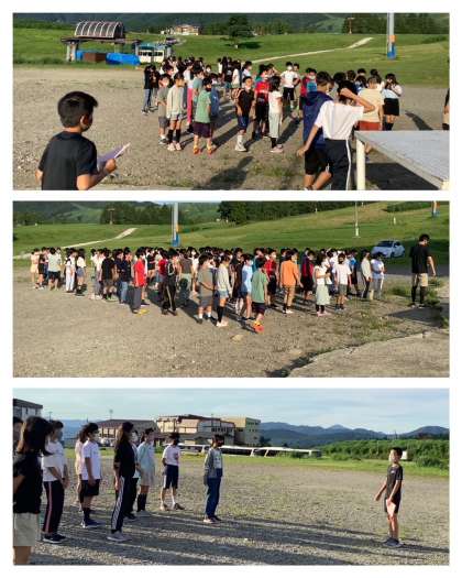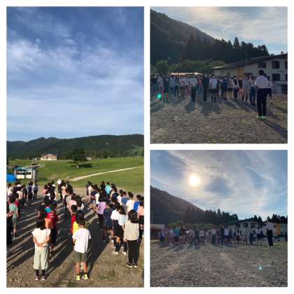 林間実行委員が司会、朝のあいさつ、今日の予定を連絡。