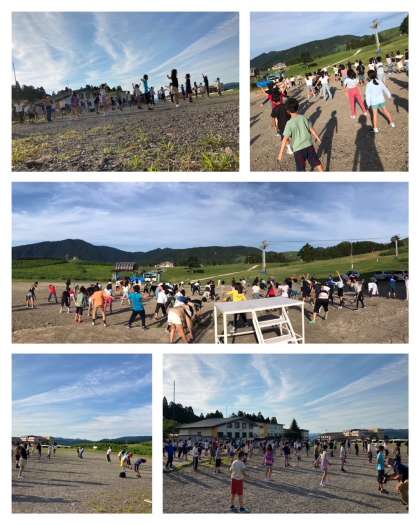 中央の校長先生の指導のもと、美しいラジオ体操に取り組んでいます。