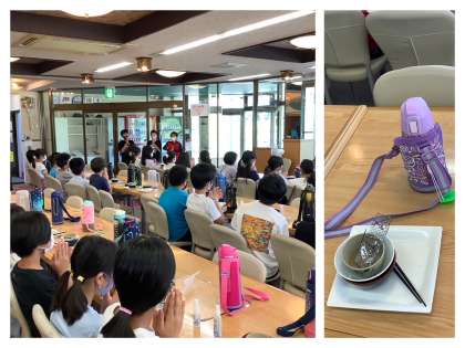 後片付けは、感染防止対策のため、一人づつ食器を運びます。