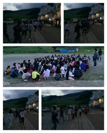 ナイトウォークには、少し明るすぎるので時間まで先生から怖いお話がありました。外に出ると、美しい景色が広がっていました。