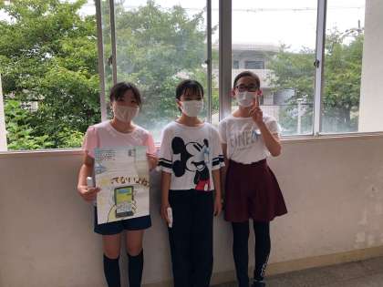 今日の伝達表彰で、6年生3人が入選し記念品が贈られました。
