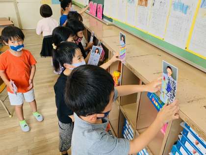 好きなものを描く子ども達はとても楽しそうでしたが、カードの裏に磁石を貼った後にはさらにヒートアップ!