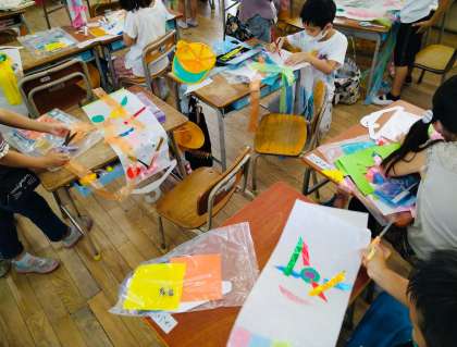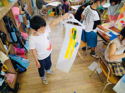 図画工作科の学習では、「ひらひらゆれて」の教材に取り組み始めました。