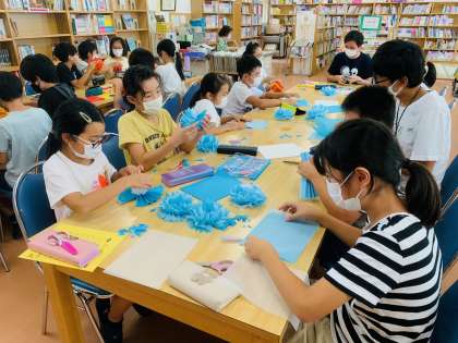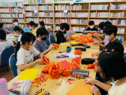 子ども達は色の組み合わせを考えながら、華やかな飾りをたくさん作ることができました!