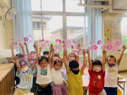 できた押し花を窓辺で光に当てて観察したり、ペンで模様を描いたり、楽しく活動することができました!