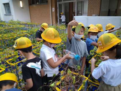 初めて経験する児童も多く、いろいろ形を変えるアサガオの花や葉に興味を持ちながらとても楽しんで学習しています!