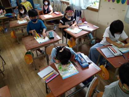 自分のアサガオの育った様子をふり返って、ワークシートに絵を描きました!