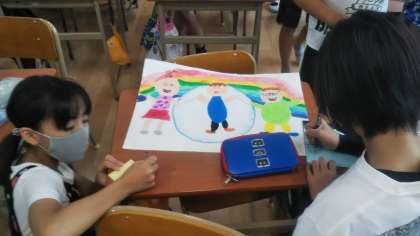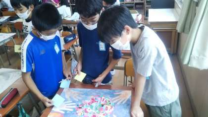 2学期は、「世界はみんなつながっている」というテーマに沿って、自分の考える『平和』をポスターに表しました。