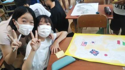 今日は平和ポスターを観賞し合い、平和への思いをさらに強くしました。