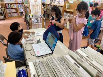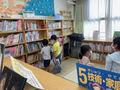 今日は週に一回の図書の時間!人気のサバイバルシリーズから生き物の本、物語など、幅広く読書をするようになりました。友達とお気に入りの本を読み合いっこして、色んな本に触れています。図書係さんも仕事をしてくれています。