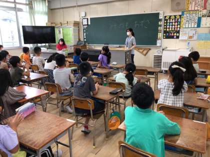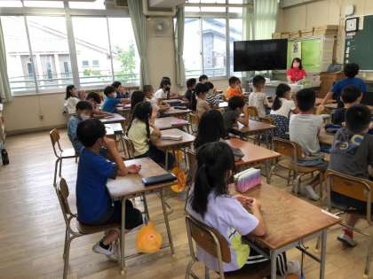 2年1組の子どもたちが、今日から来られた教育実習生に自己紹介をしていました。