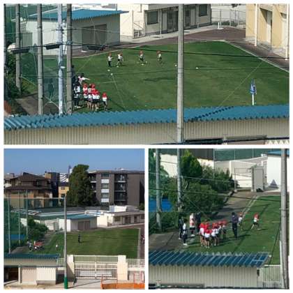 西運動場の芝生広場では、朝暘幼稚園の園児が運動会に向けて「かけっこ」の練習をしています。フワフワの芝生の上を気持ちよさそうに走っています。