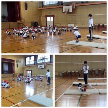 見学に来た校長先生から、「後ろまわり」のコツを伝授してもらいました。