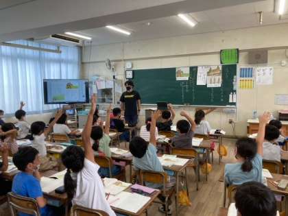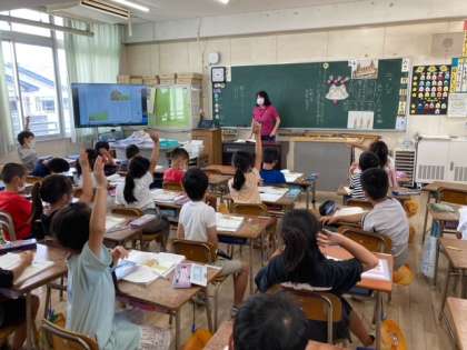 国語のニャーゴでは1組と3組で、どうしてためいきをついたのかを考えました。「ねこがねずみを食べられなくなったから」「ねずみと仲良くなったから」などいろんな意見が出ました!ためいきはどんな顔かを考えました。