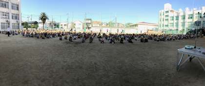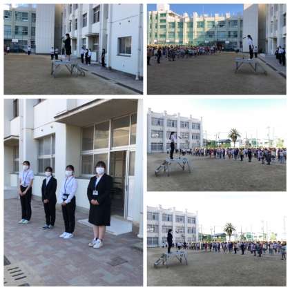 10月4日(月)、久しぶりの運動場での全校朝会です。