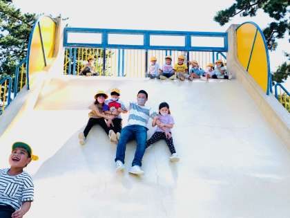 各クラスで集合写真を撮った後は、楽しみにしていた遊びの時間です。