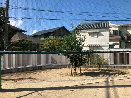運動場の遊具がある奥の場所に、柿の木があります。