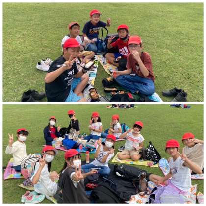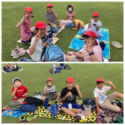 芝生広場で、お弁当タイムです。