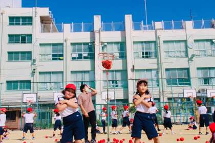 今日は入場と退場の練習をした後に玉入れをしました。
