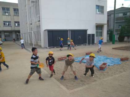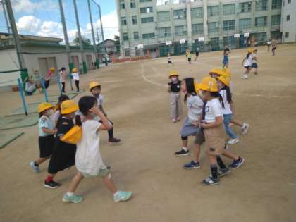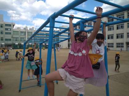 子ども達は運動場に出て、うんていやおにごっこ、はないちもんめをしながら仲良く元気に遊んでいます。