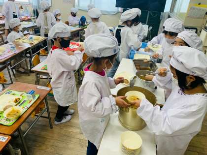 いつもなら野菜のおかずを減らしにくる児童が、今日は自分から増やしにくる姿を見ることができ、意識の変化を嬉しく思います。