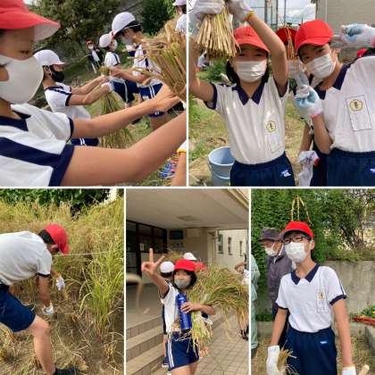 2組は、10月21日(木)3時間目に稲刈りをしました。