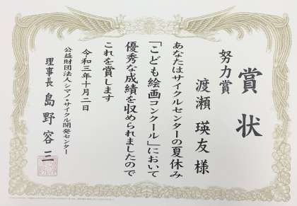 10月25日(月)の全校朝礼で校長先生から表彰されました。