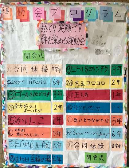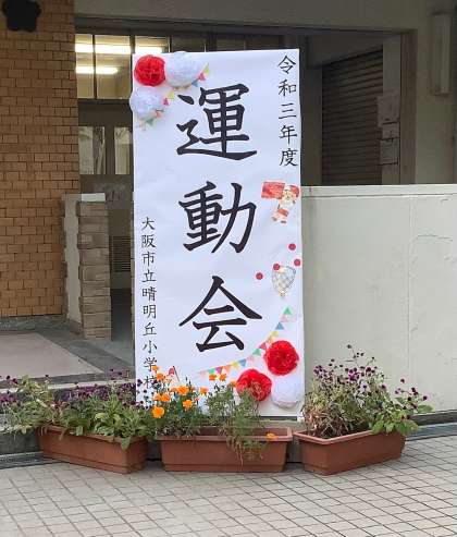 プログラムや運動会の看板も設置できています。