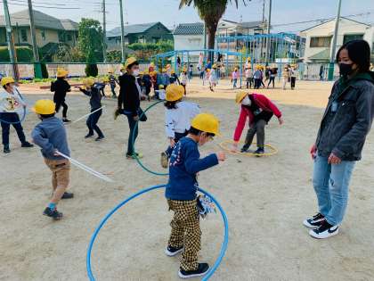委員会のお兄さんお姉さんが、お手本を見せてくれたり、教えてくれたりします。
