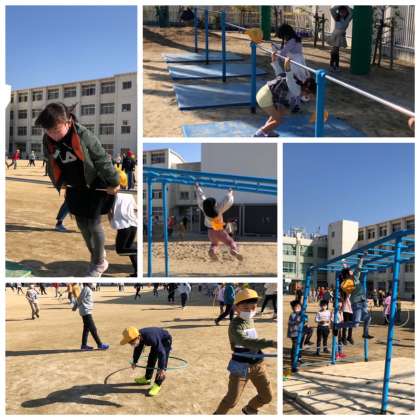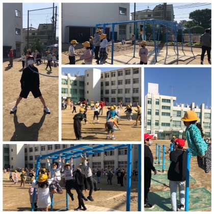 運動委員会が取り組んでいるパワーアップタイム(遊具で遊ぼう)、今日は2年生です。運動委員会の児童が、遊び方や楽しみ方を説明したり一緒に遊んだりしながら、つながりを深め、体力の向上をめざします。