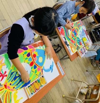 【1年生】 図工「作品展に向けて」