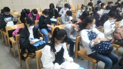 資料を1人1冊受け取り、講堂へ。