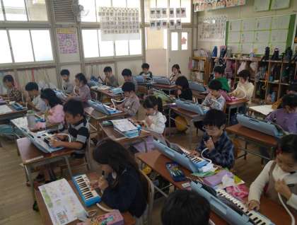 最初はなかなかうまくいきませんでしたが、何度か歌ううちにうまく歌えるようになり、最後は鍵盤ハーモニカで輪奏しました。