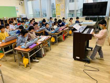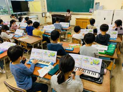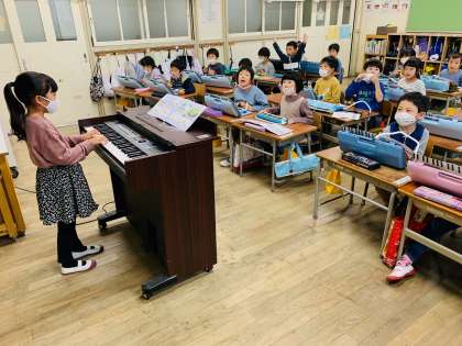 「オルガンで伴奏をしたい!」と前に出てきてオルガンに挑戦する児童がとても多く、意欲が大変すばらしいです!