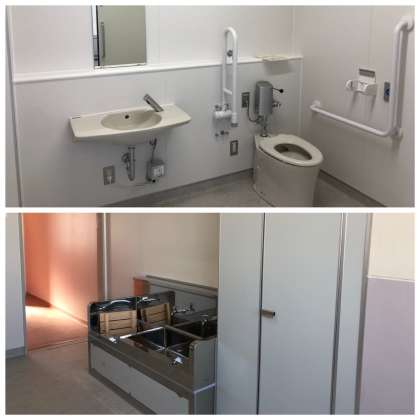 トイレの案内掲示も張られ、流し台等も設置されました。