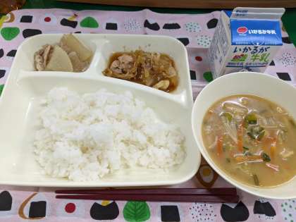 12月3日(金)のこんだては「鶏肉の甘辛焼き、みそ汁、だいこんの煮もの、ごはん、牛乳」です。
