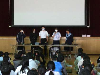 12月6日(月)5時間目、中学校の紹介のために阪南中学校の生徒会役員5名が来校。