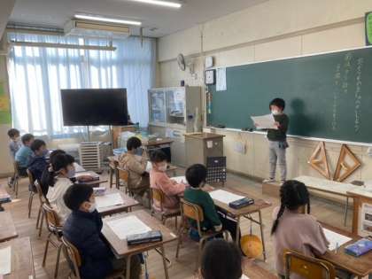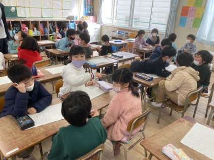自分のたからものを紹介しました。「お年玉で買ったもの」や「家族」、「小さい時から持っているもの」など、少し誇らしげに発表していたように思います。後に、グループで発表の良いところを話し合いました。