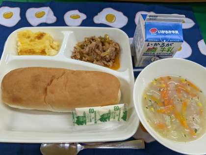12月8日(水)のこんだては「豚肉のケチャップソテー、コーンスープ、焼きプリン、コッペパン、ソフトマーガリン、牛乳」です。