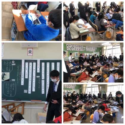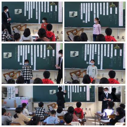 12月9日(木)5時間目、緊張気味の子どもたちですが、物語を読んで中心人物の性格を想像して、感じたことや考えたことを積極的に発言しています。