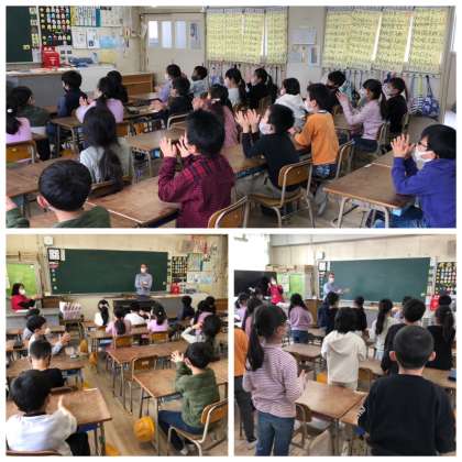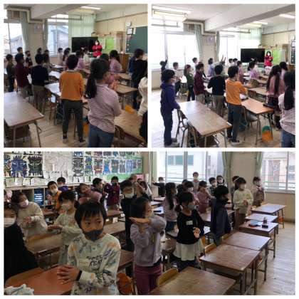 からだいっぱい使って表現しています。知らず知らずのうちに、ネイティブな発音が身についています。とても楽しそうでした。